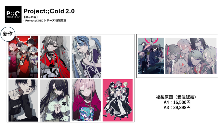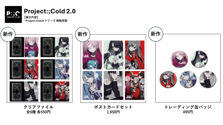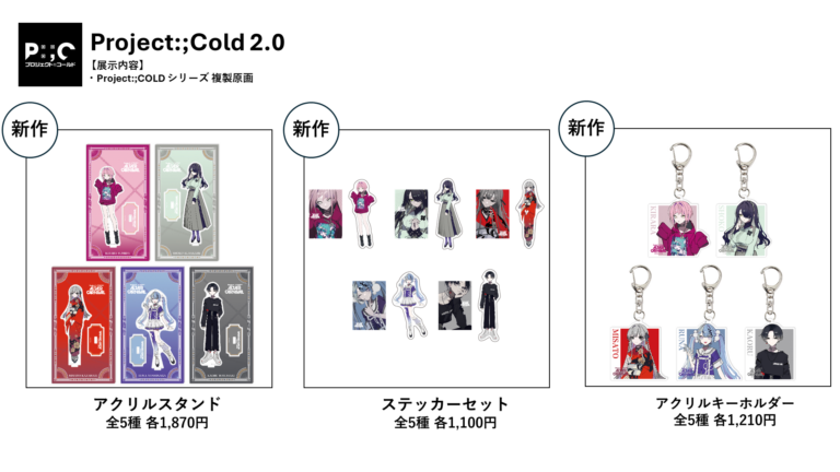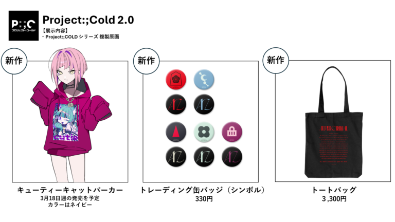 そのほか、各クリエイターの展示品にちなんだグッズも販売されるほか、「Project:;COLD」シリーズ最新作『Project;;COLD 2.0』のグッズも販売予定。詳細は続報をお待ちください。