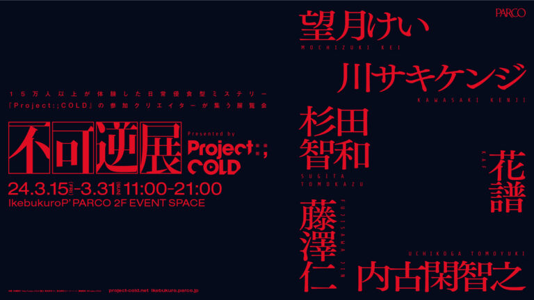 Team Project:;COLDは、3月15日~31日の間、池袋PARCOにて、クリエイター合同展覧会『不可逆展 presented by Project:;COLD』(以下「不可逆展」)を開催いたします。