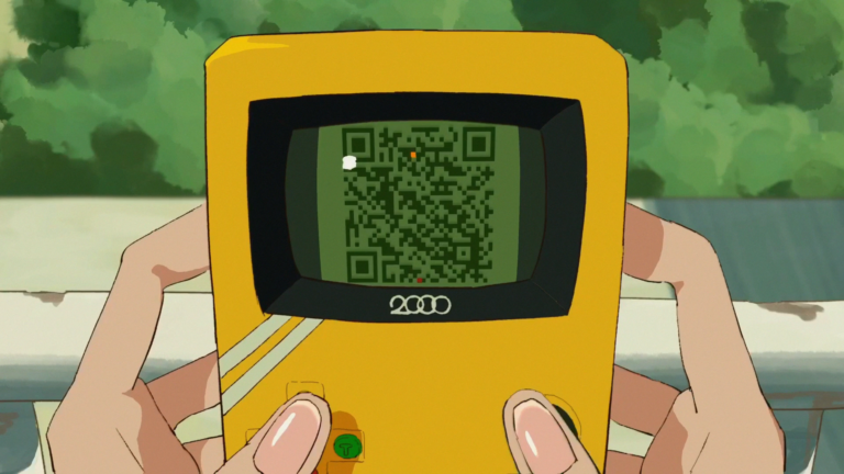 例えばこちらのシーン(0:20)には、QRコードが表示されており、これを読み取ると“大量の英数字”が表示されます。これが暗号となっており、ある方法を用いることで画像に変換することができます。