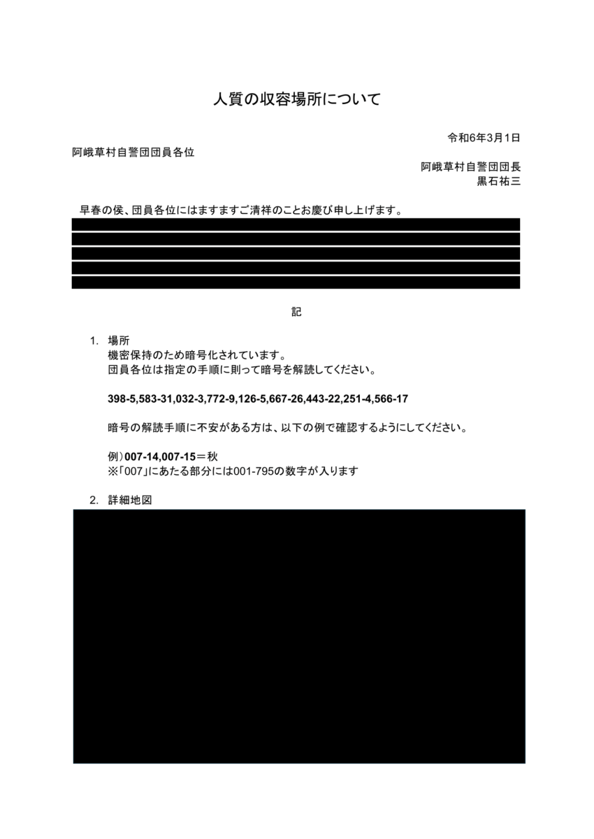 ネットプリントをすることで「人質の収容場所について」という黒塗り文書が手に入ります。