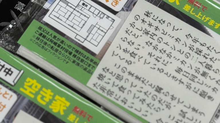 カプセルトイ『行き場のなくなったポケットティッシュ』の再出荷版には、20等分された「阿峨草村の広報誌(1月号)」が入っています。カプセルトイを購入する都道府県によって、出てくるピースが異なるようになっていました。