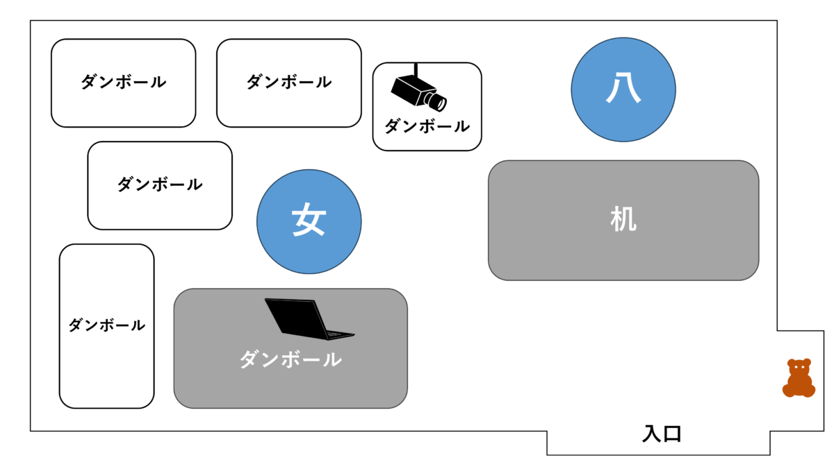 14:00の回になってもステッカーを受け取ることはできず、「このままではまずいのではないか?」と焦る融解班でしたが、より注意深く八本木の動作を観察すると、【八本木が監視役の男がいる方にときどき視線を向ける】【八本木がペンで監視役の男の目の前にあるPCを指し示す】といったことに気が付くことができます。